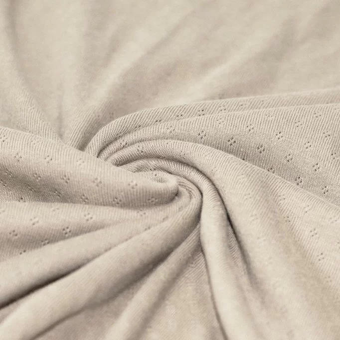 Pointelle úplet sa skladá zo 100% bavlny, no vďaka spôsobu pletenia je príjemne elastický. Má krásnu jemnú štruktúru, ktorá mu dodáva nežný nádych. Z tohto materiálu vytvoríte: